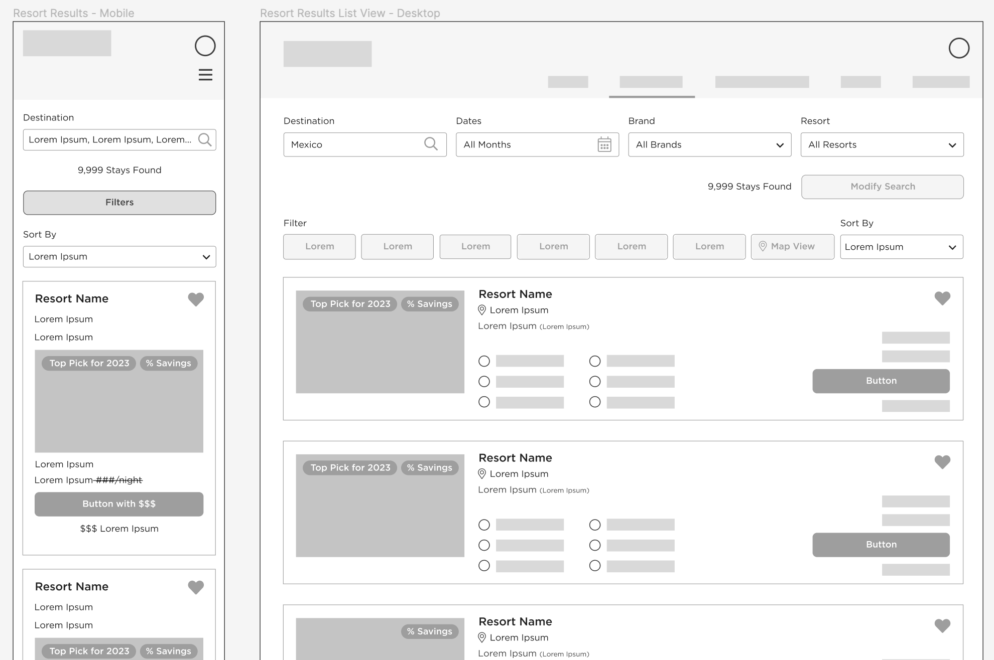 One of the more significant changes was to the listings page, where we determined a vertical layout was necessary, and the type of grouping I’d come up with worked better for resorts than timeshare listings, which are unique and individual.